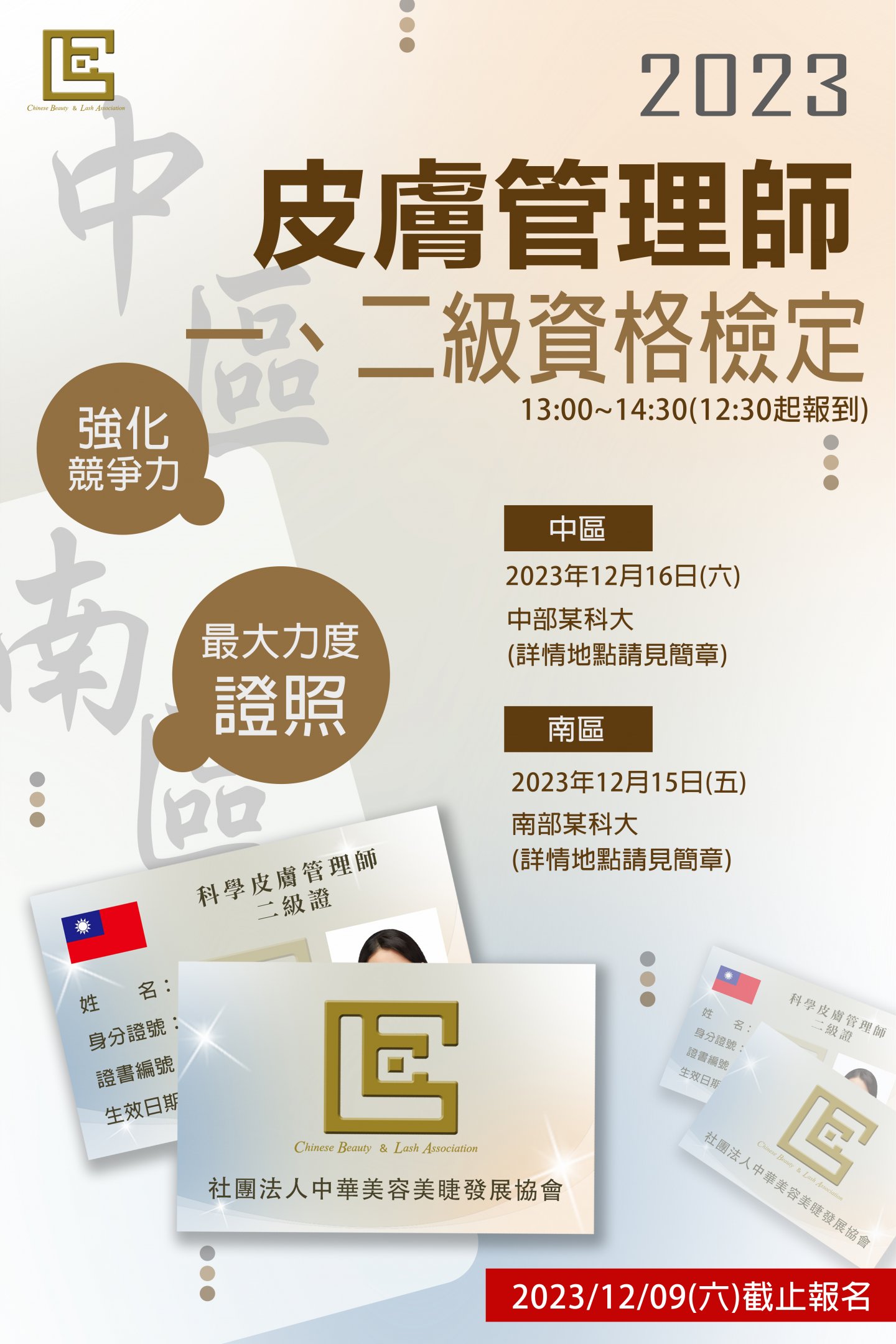[開始報名]2023皮膚管理師二級/一級資格檢定認證